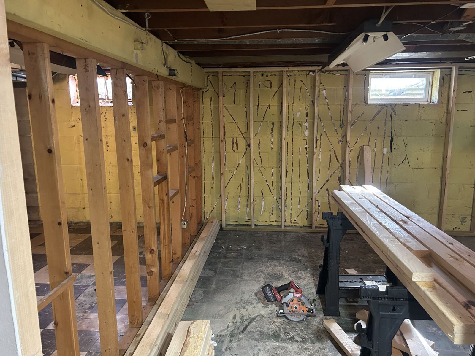 Full basement renovation including new framing, plumbing and finished bathroom.